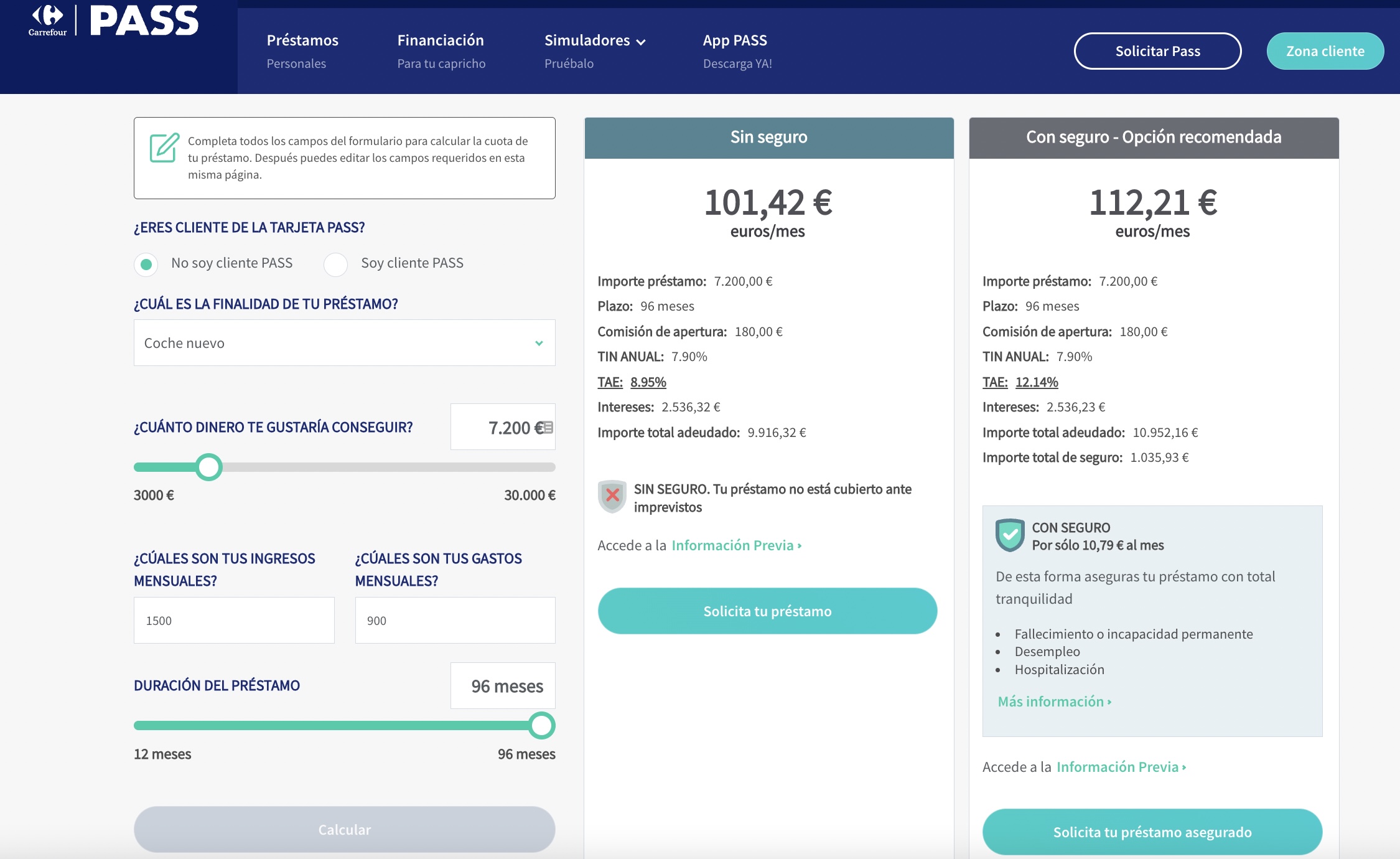 A eso debes añadir el TAE, que está presente en todos los productos financieros de Europa, y que depende totalmente de la cantidad y plazo de cada una de las solicitudes que recibe Carrefour Préstamos.